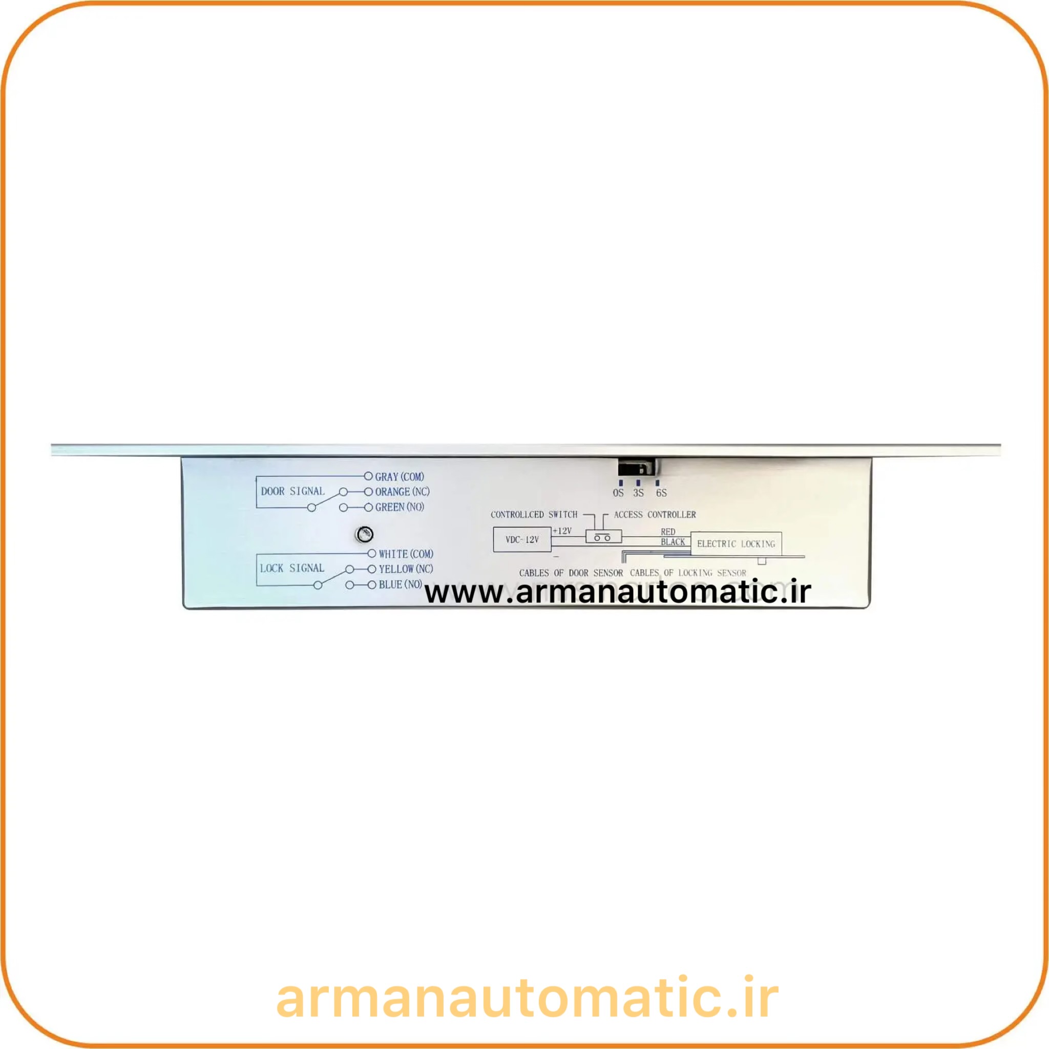 سیم های نارنجی ، سبز و طوسی جهت تشخیص وضعیت باز یا بسته بودن درب می باشند. ( سبز : NO ، طوسی : COM ، نارنجی : NC )هنگامی که درب کاملا بسته است جریان در سیم های NC ( نارنجی ) قطع و در NO ( سبز ) وصل می گردد .